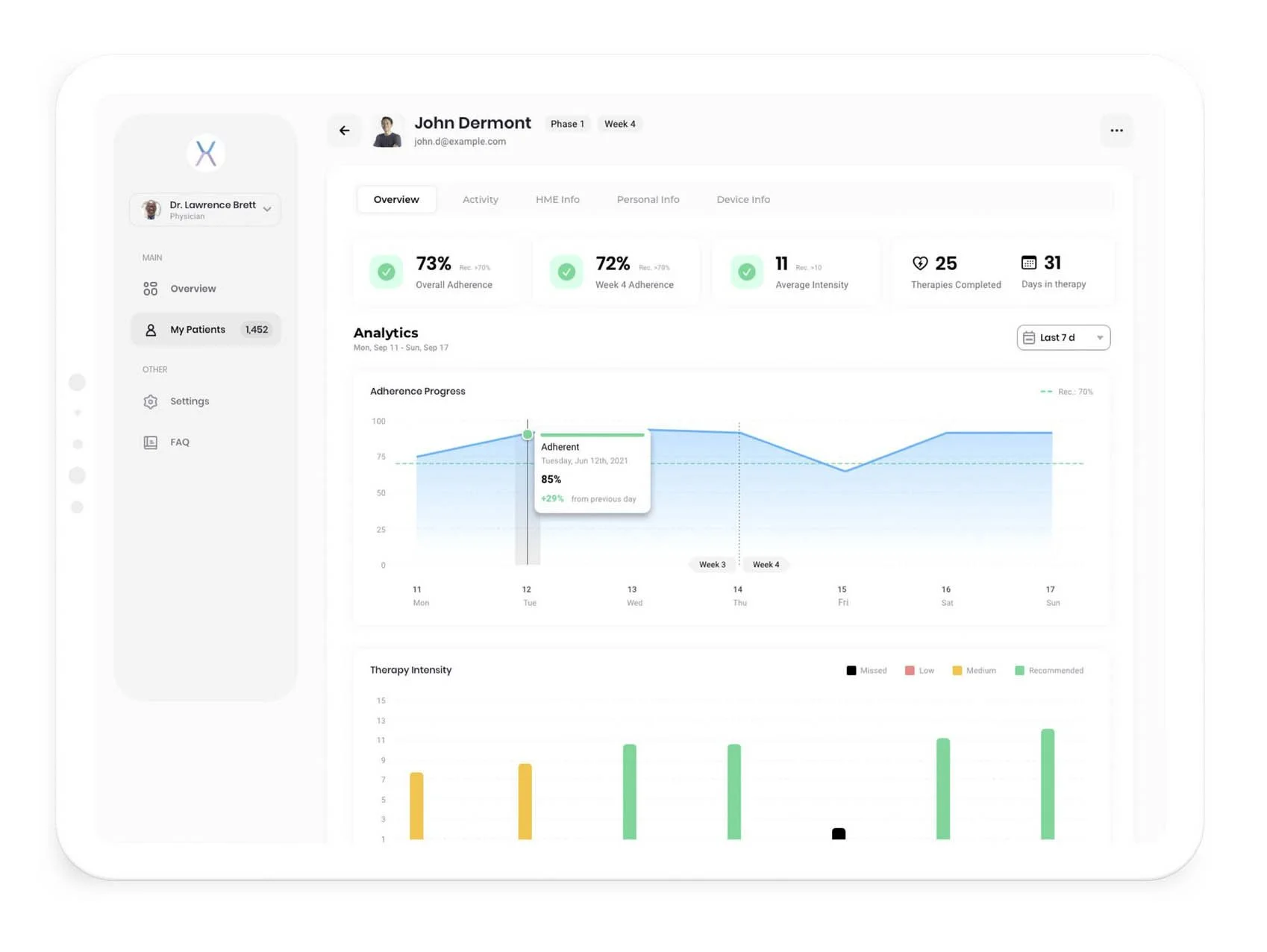 In under 16 weeks we built a new cloud infrastructure, back end application, cloud, web portals for sleep clinics and medical equipment vendors, two native apps for patients, and launched in the Spring of 2021. The first clinical trials began soon after launch.