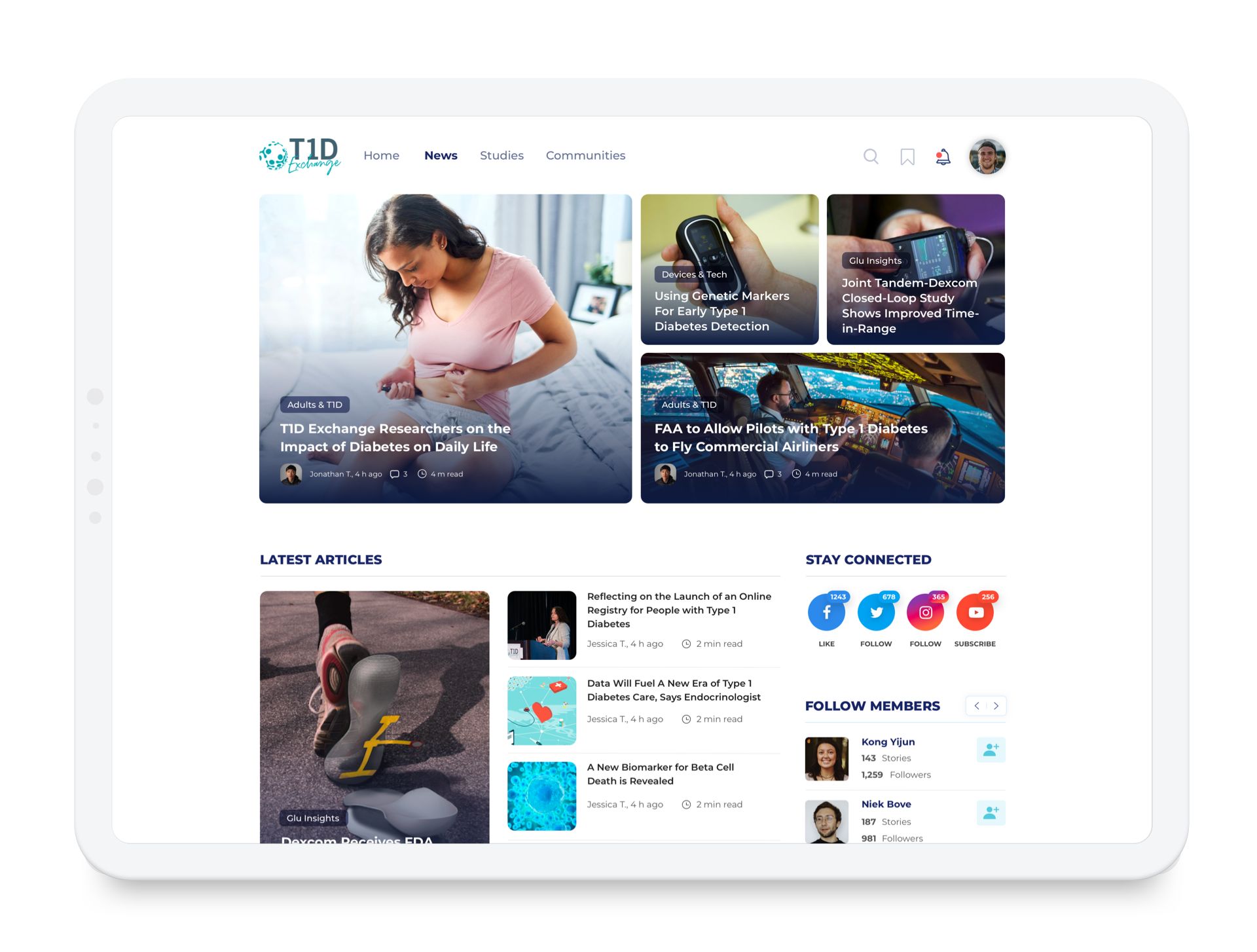 We refreshed the T1D Exchange’s brand and redesigned the public-facing website. In this process, the active T1D Community of patients and caregivers was refined and relaunched on this site.